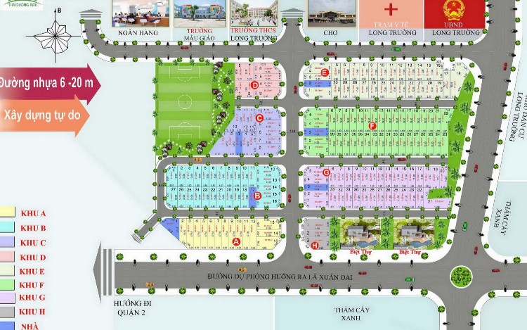 - Công ty Thái Dương triển khai mở bán tiếp Lock E – F, một Khu dân cư gần Quận 2 mang tầm dự án, có vỉa hè 2m, cây xanh và sân chơi thể thao, tầm nhìn view sông thích hợp cho những khách hàng muốn xây biệt thự vườn và nhà hàng sân vườn, khu dân cư đông đúc.