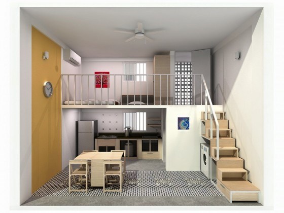 Diện tích phù hợp cho gai đình nhỏ: 30m2. Nhà được thiết kế nhìn rất thoáng, ko có cảm giác chật hẹp.