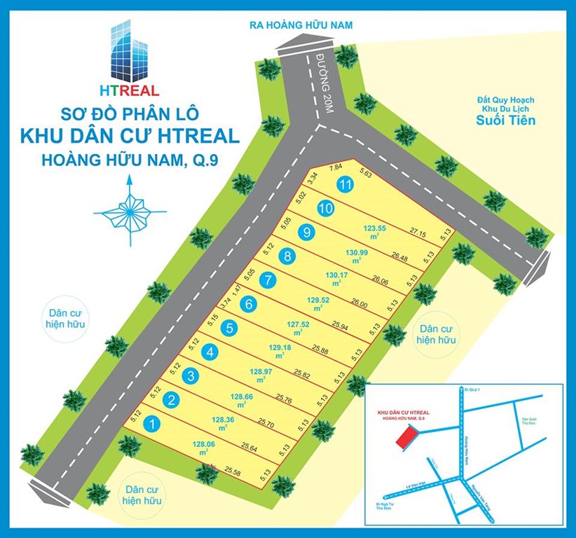 - Nằm trên trục đường Hoàng Hữu Nam, gần ngã 3 Mỹ Thành, kề KDL Suối Tiên, Khu công nghệ cao...