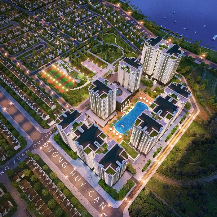 - Công viên trung tâm rộng 2.3ha được bố trí cụm 4 sân tennis, sân tập cầu lông, bãi cỏ trung tâm