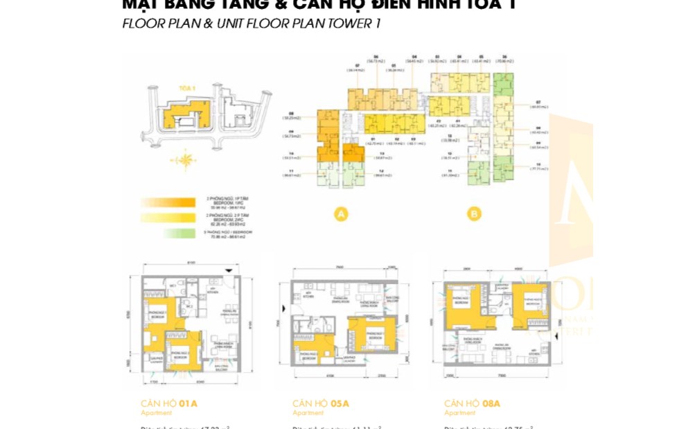 - Căn hộ với diện tích đa dạng: 61 - 93m2 (2 - 3PN).
